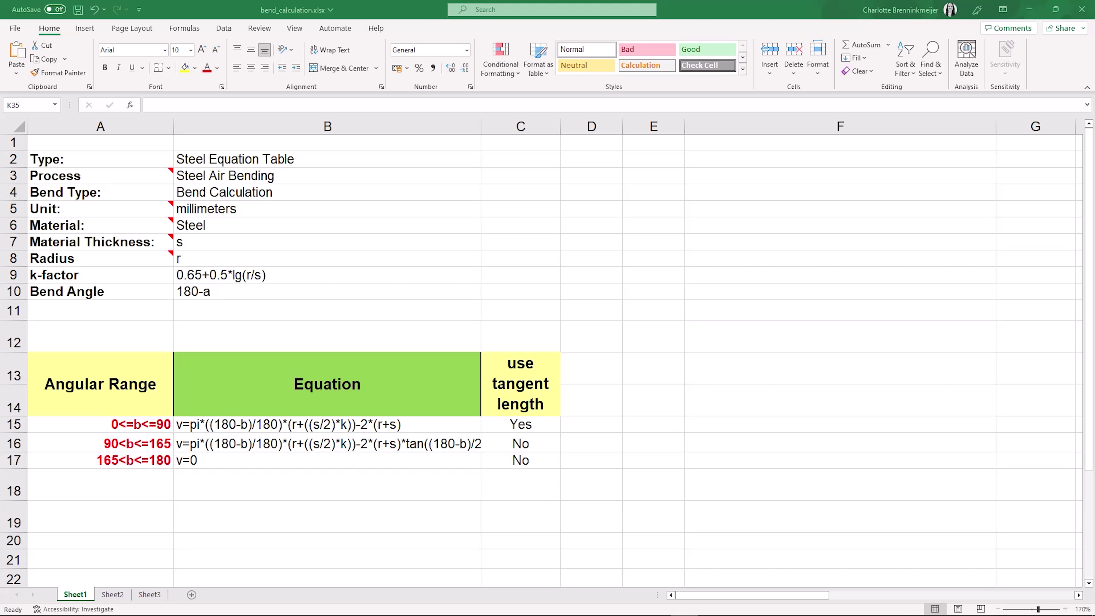 This method takes a more analytical approach, utilizing an equation to calculate the K-Factor based on various parameters, including material thickness, bend radius, and bend angle.
