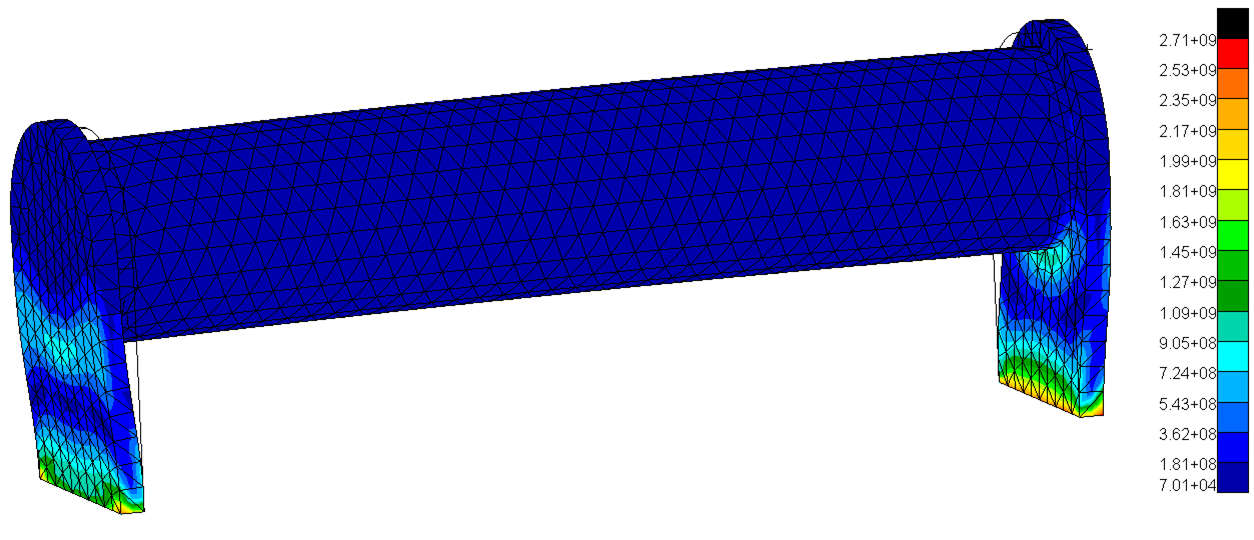 We now have a mapped thermal load and can run a static analysis to look at the stress resulting from the constrained expansion of the model.