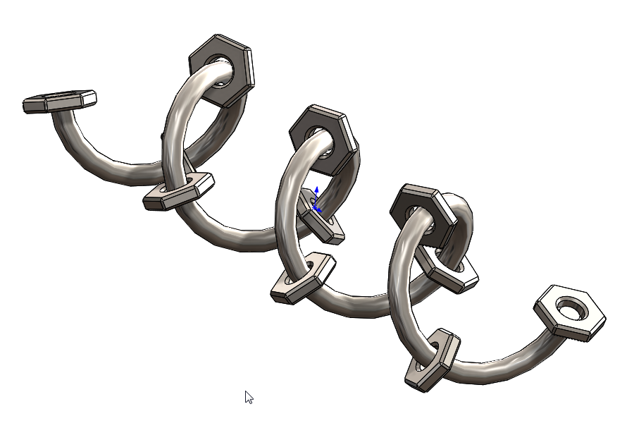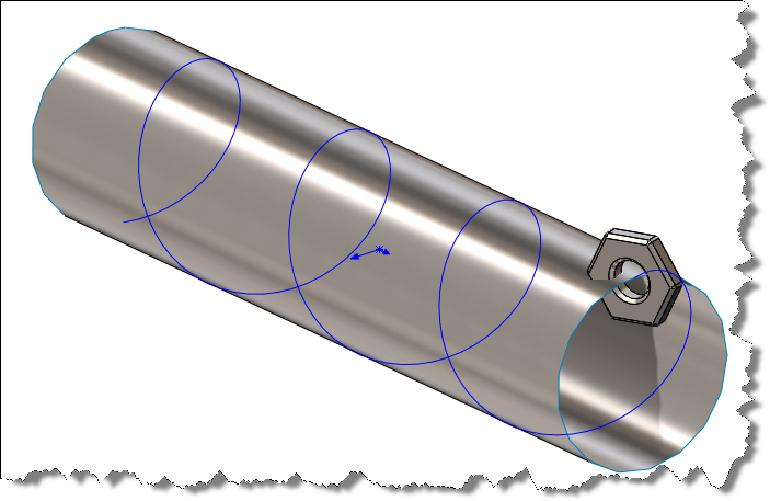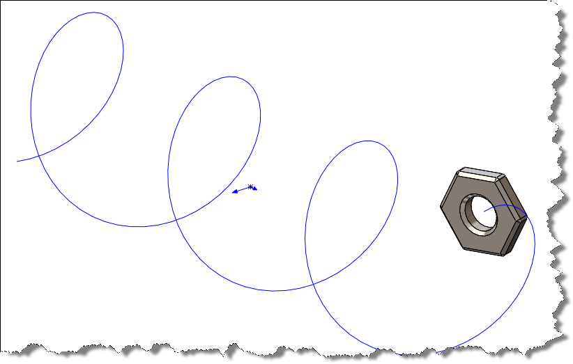 Anyway back to the main focus of this blog, and what I wanted to discuss is how to better control patterns along more complex 3D curves- in this example I use a Helix. The starting point was to draw a helix and the seed feature- I then wanted to pattern the nut so that it followed the helix as if it were linked or welded to a chain that passed through.