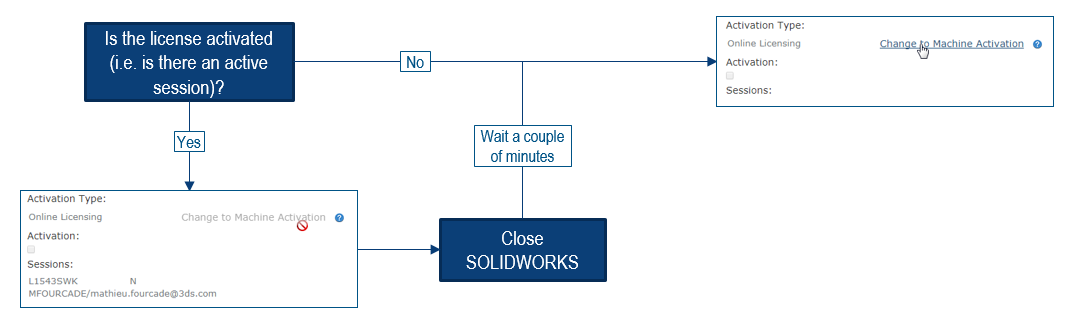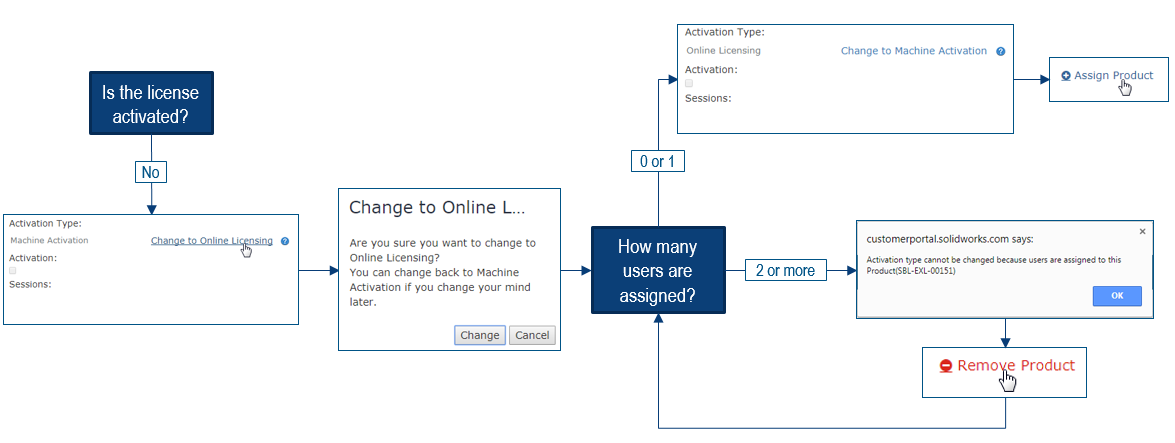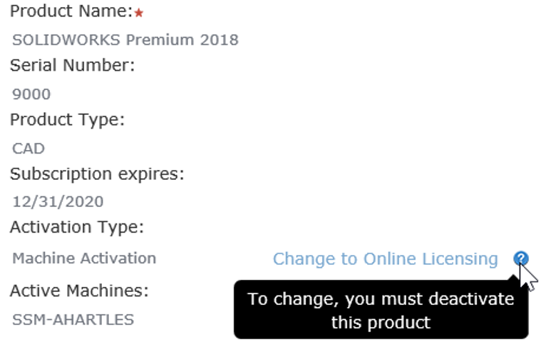 - To convert a SOLIDWORKS license to an Online Licensed product, it must be assigned to a user in the Admin Portal and have its current machine based activation deactivated.