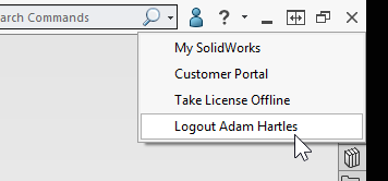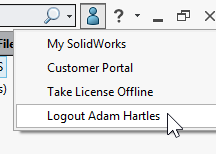 - At the end of the working day you close SOLIDWORKS down but have not logged out.