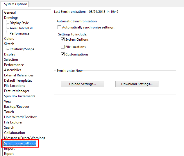 - You can synchronise your SOLIDWORKS settings by storing them within your account- therefore no matter where you login, your user interface, keyboard and mouse shortcuts etc can stay the same.