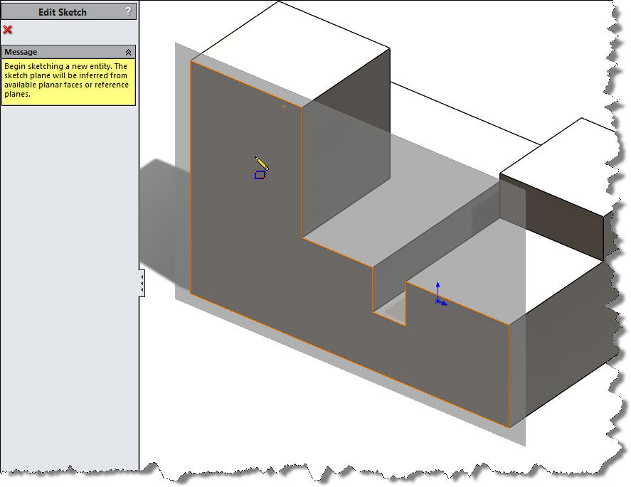 This tool allows you to sketch on multiple faces without having to keep opening and closing sketches. You can simply just hover over the next face that would like to sketch on and then carry on sketching on a different face. Solidworks will highlight the face in grey to show you where your new sketch will be placed and you just continue on sketching as normal (as shown below).