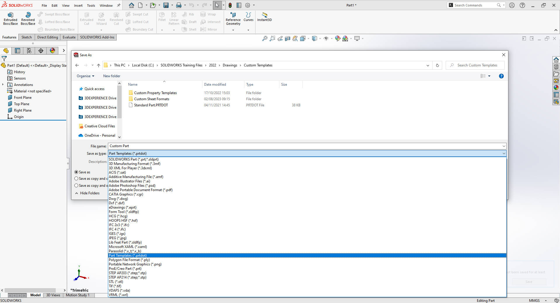 HOW TO SAVE A SOLIDWORKS PART TEMPLATE