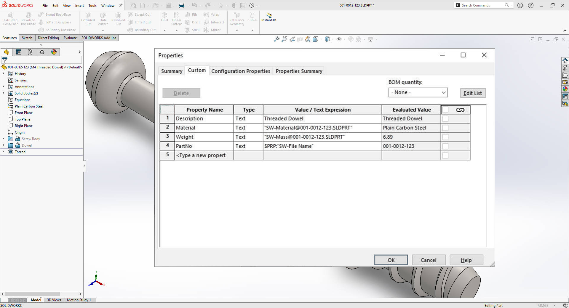HOW TO ADD CUSTOM PROPERTIES IN SOLIDWORKS